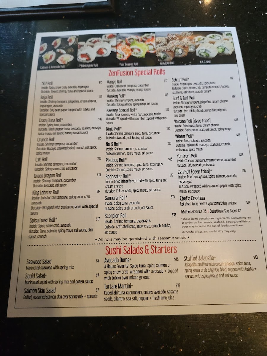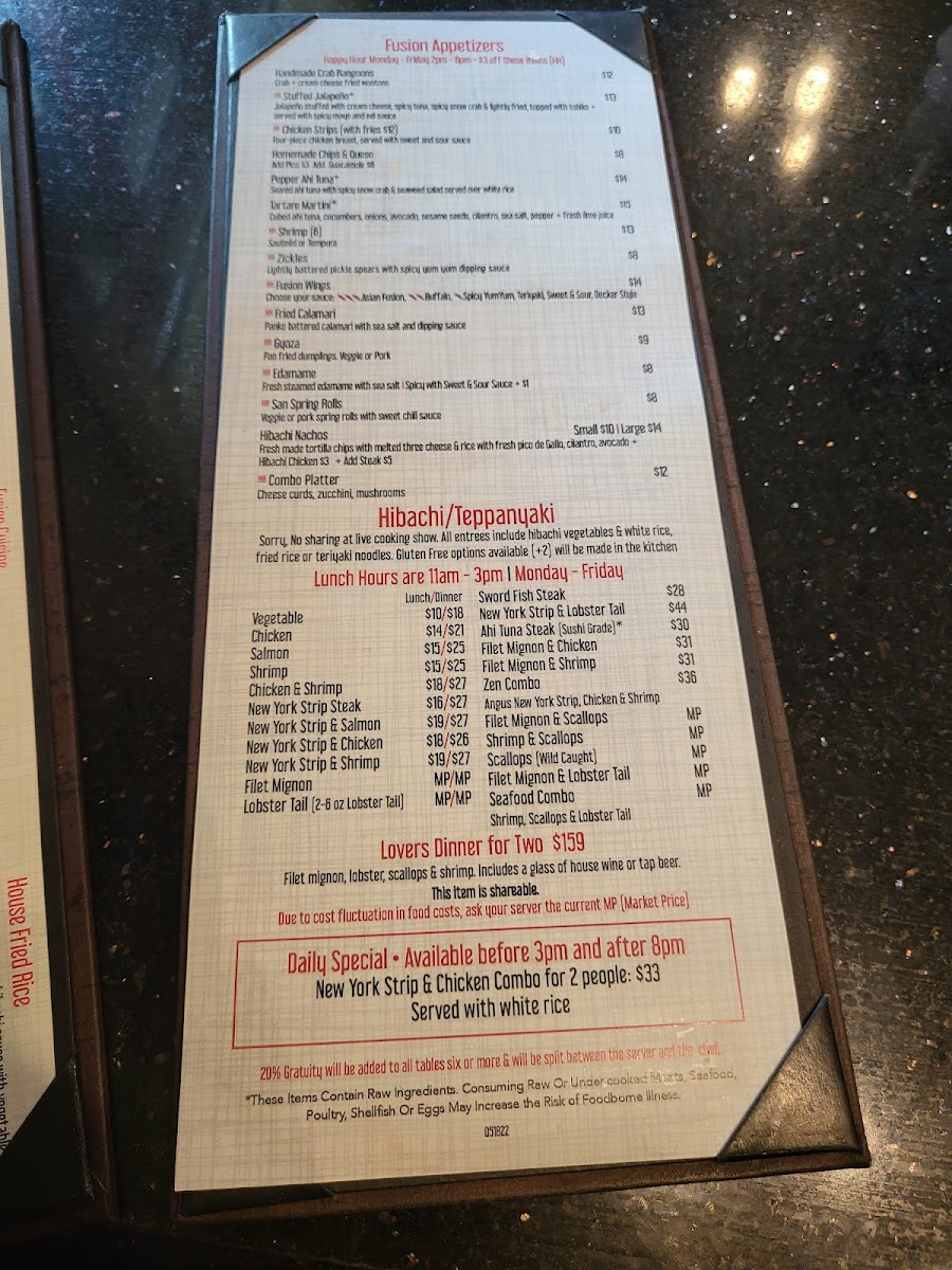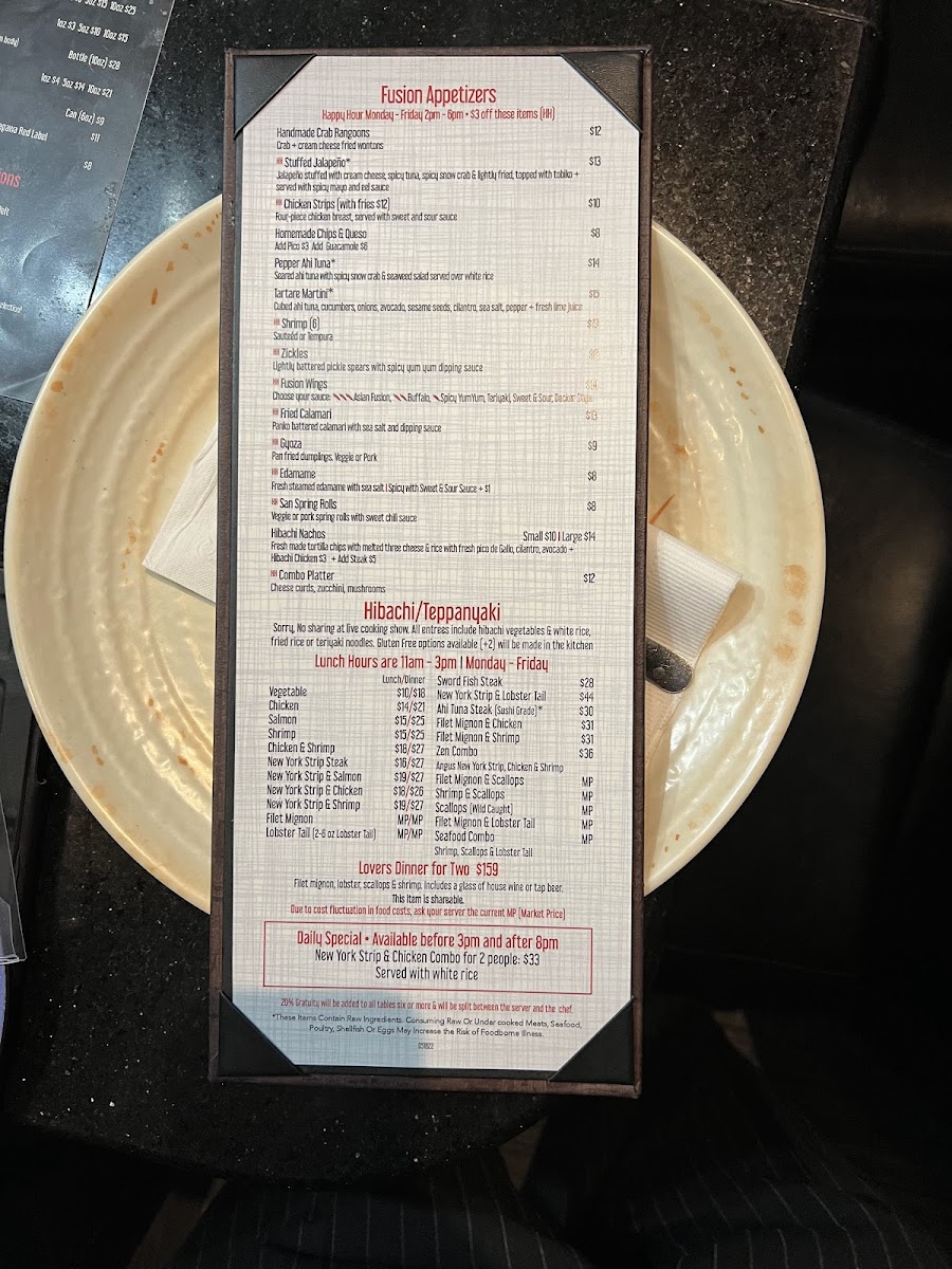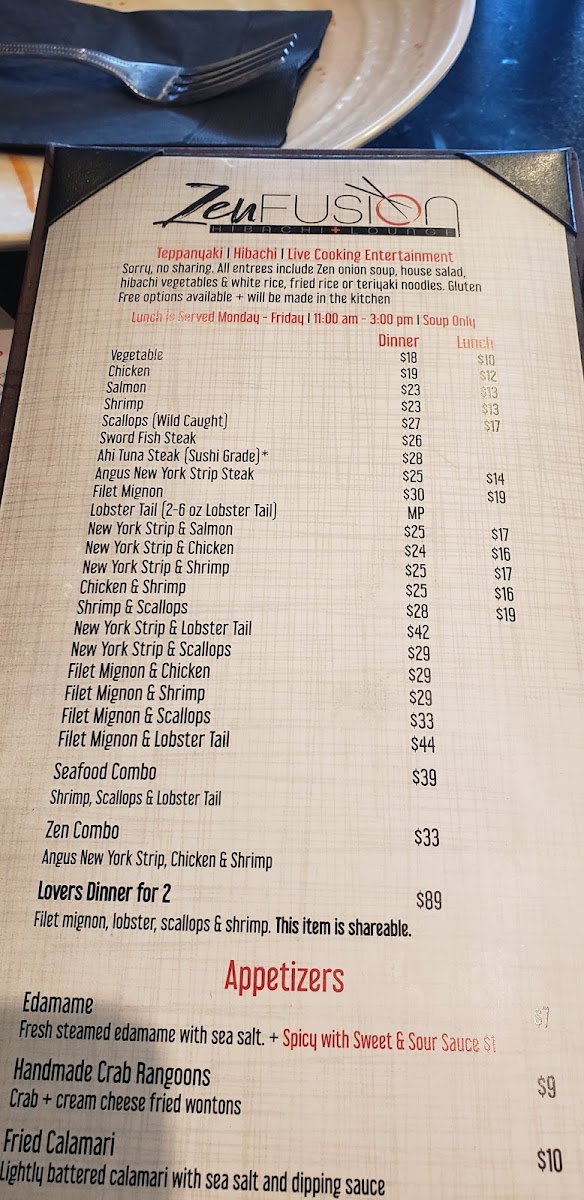Zen Fusion Hibachi & Lounge Menu